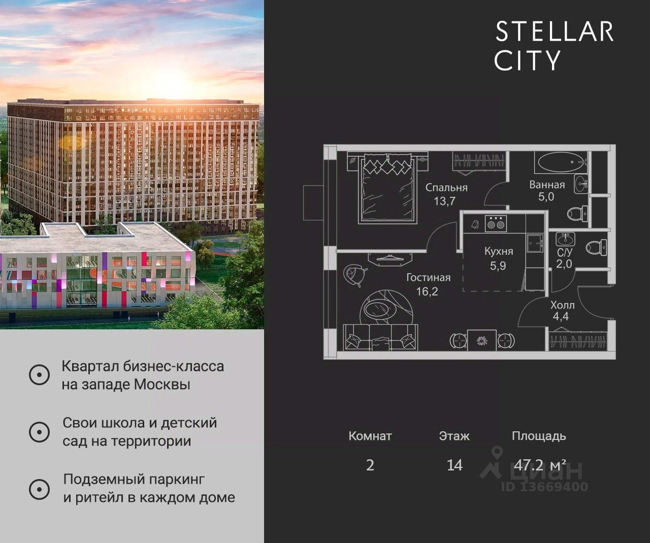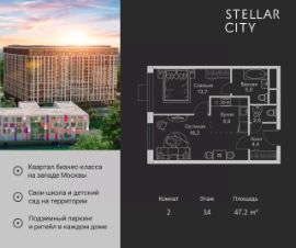 Продается квартира от надежного застройщика Tashir Estate в квартале бизнес-класса Stellar City в ЗАО Москвы.