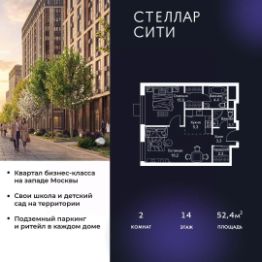 Квартира находится на 14 этаже, 4 корпуса жилого квартала Stellar City — микрогорода будущего на орбите Москвы.