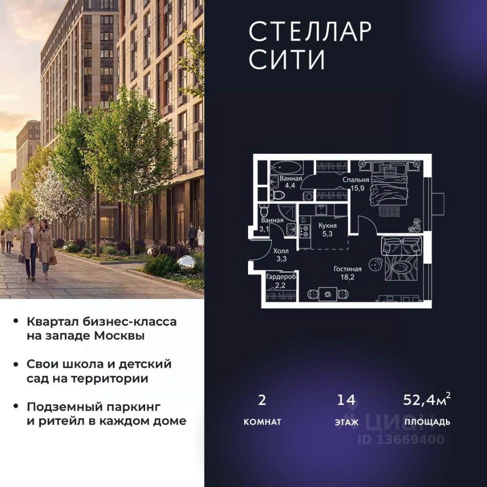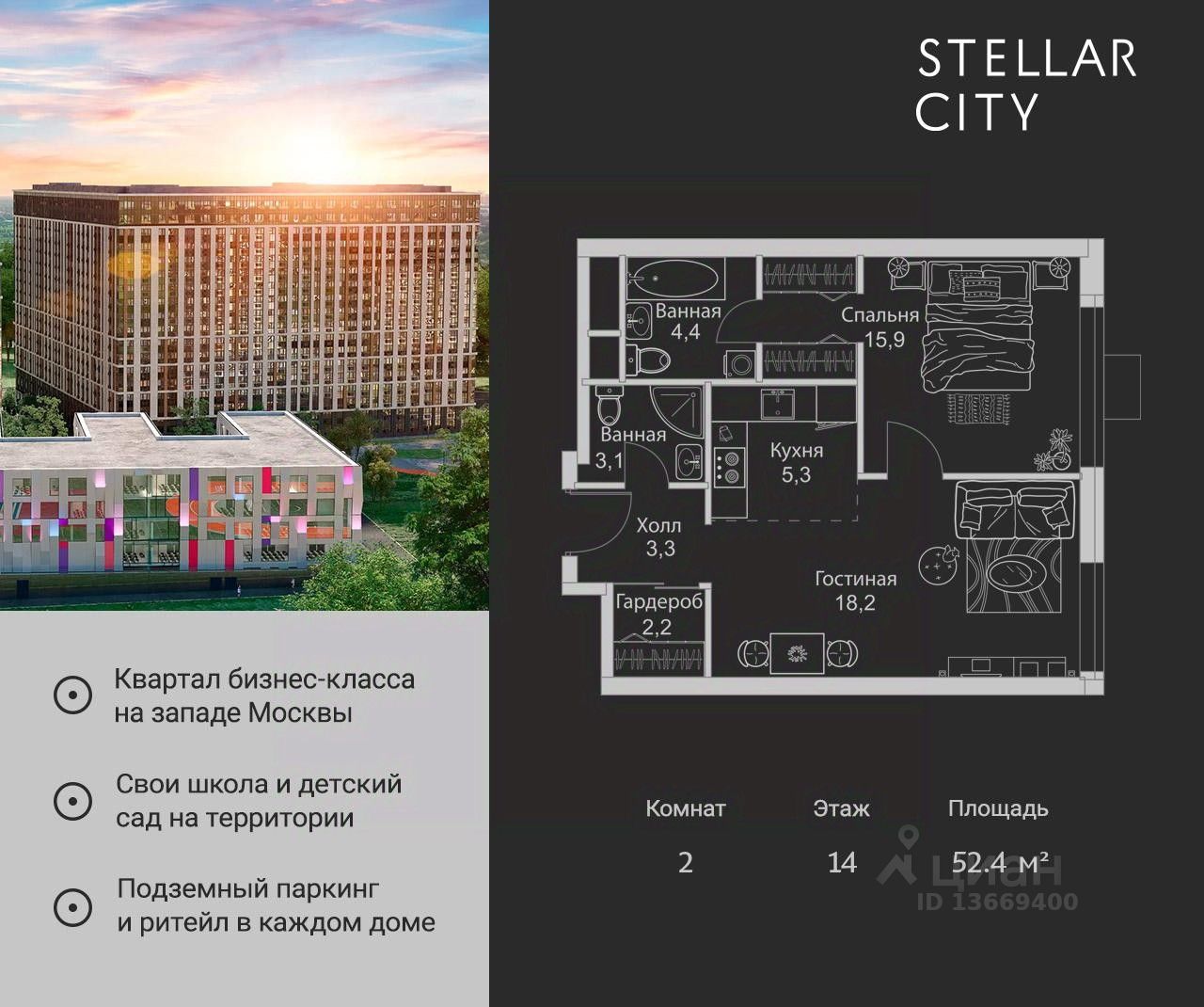Продается квартира от надежного застройщика Tashir Estate в квартале бизнес-класса Stellar City в ЗАО Москвы.