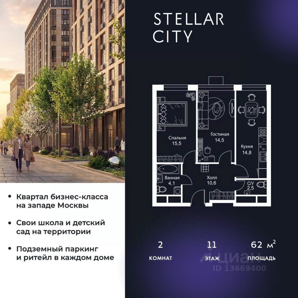 Продается квартира от надежного застройщика Tashir Estate в квартале бизнес-класса Stellar City в ЗАО Москвы.
