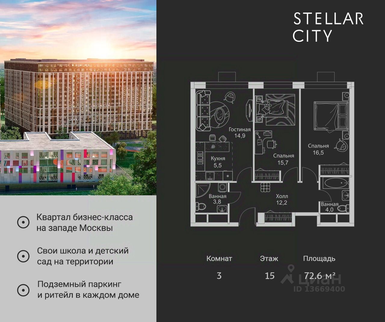 Продается квартира от надежного застройщика Tashir Estate в квартале бизнес-класса Stellar City в ЗАО Москвы.
