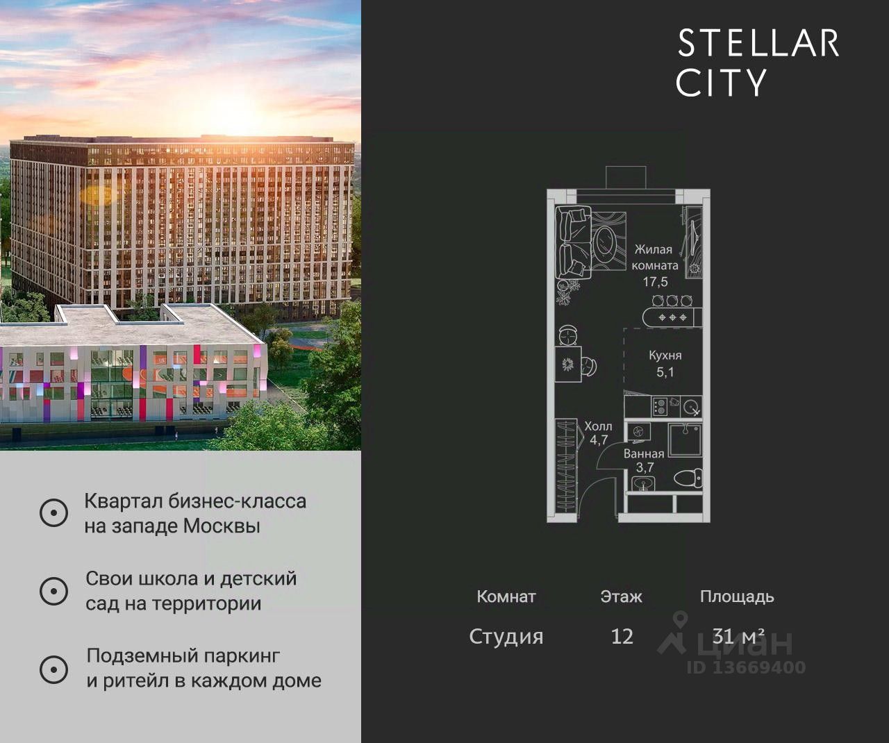 Продается квартира от надежного застройщика Tashir Estate в квартале бизнес-класса Stellar City в ЗАО Москвы.