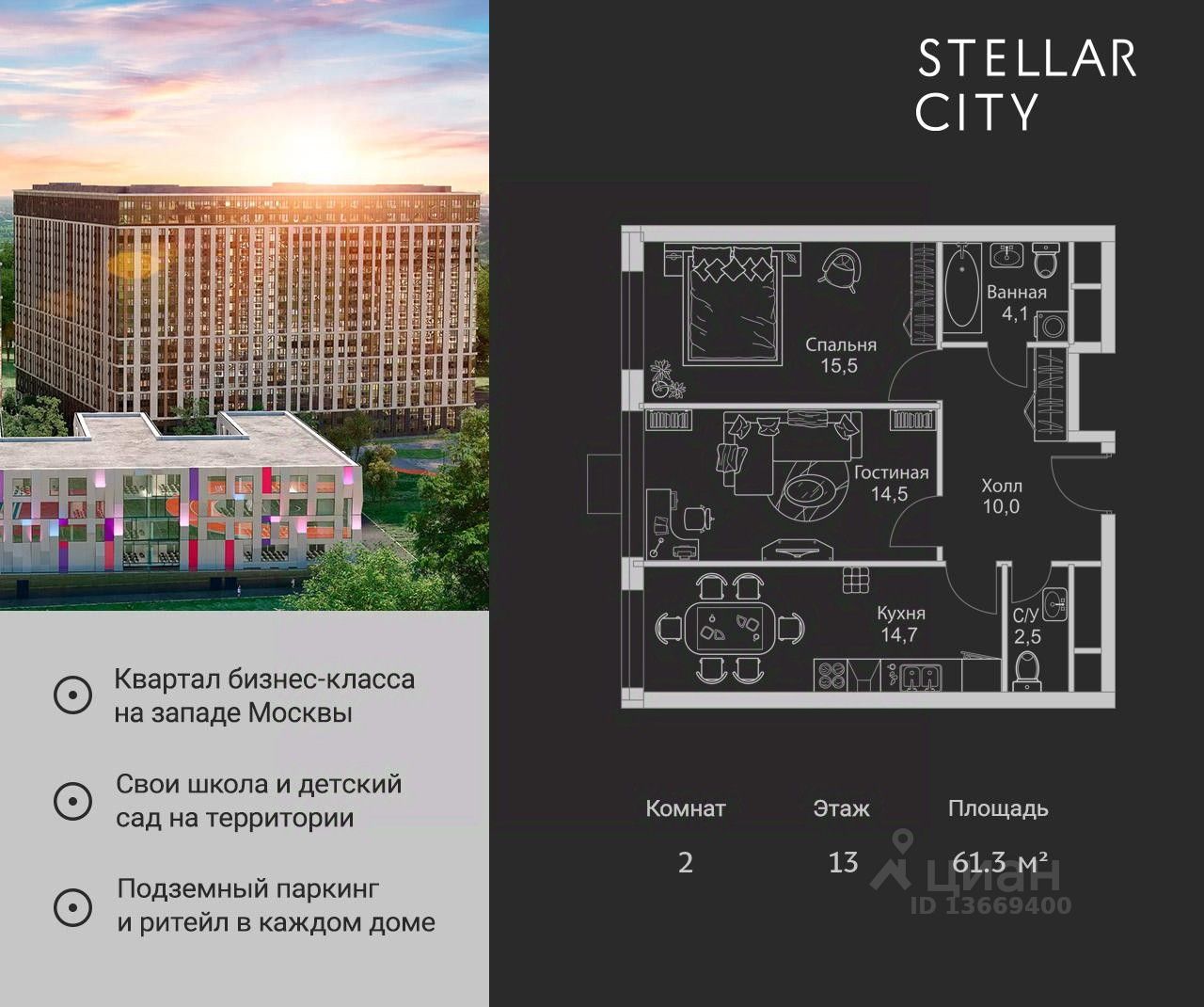 Продается квартира от надежного застройщика Tashir Estate в квартале бизнес-класса Stellar City в ЗАО Москвы.