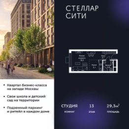 Продается квартира от надежного застройщика Tashir Estate в квартале бизнес-класса Stellar City в ЗАО Москвы.