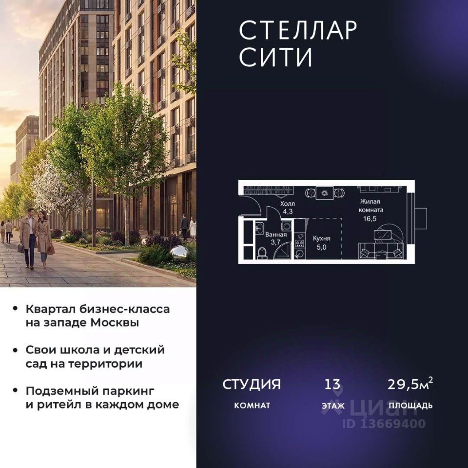 Продается квартира от надежного застройщика Tashir Estate в квартале бизнес-класса Stellar City в ЗАО Москвы.