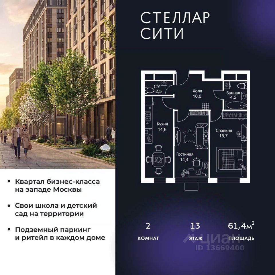 Продается квартира от надежного застройщика Tashir Estate в квартале бизнес-класса Stellar City в ЗАО Москвы.