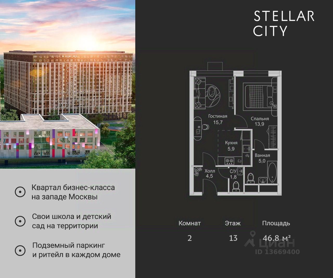 Продается квартира от надежного застройщика Tashir Estate в квартале бизнес-класса Stellar City в ЗАО Москвы.