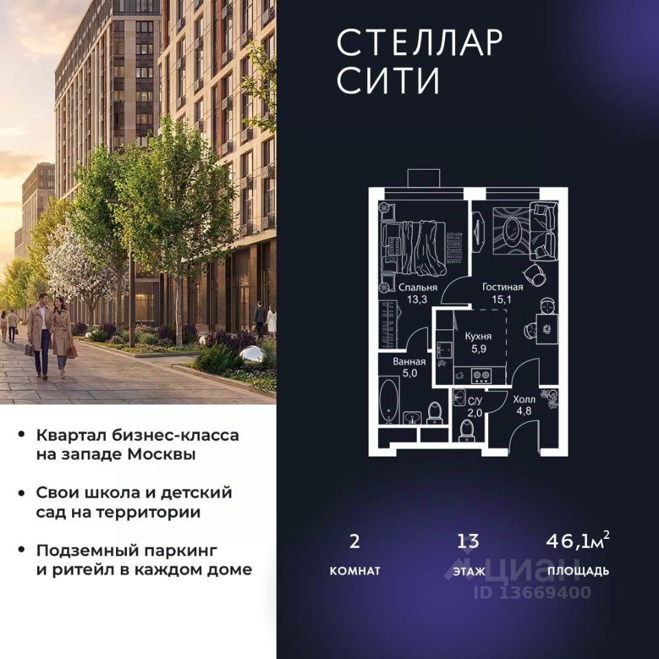 Продается квартира от надежного застройщика Tashir Estate в квартале бизнес-класса Stellar City в ЗАО Москвы.