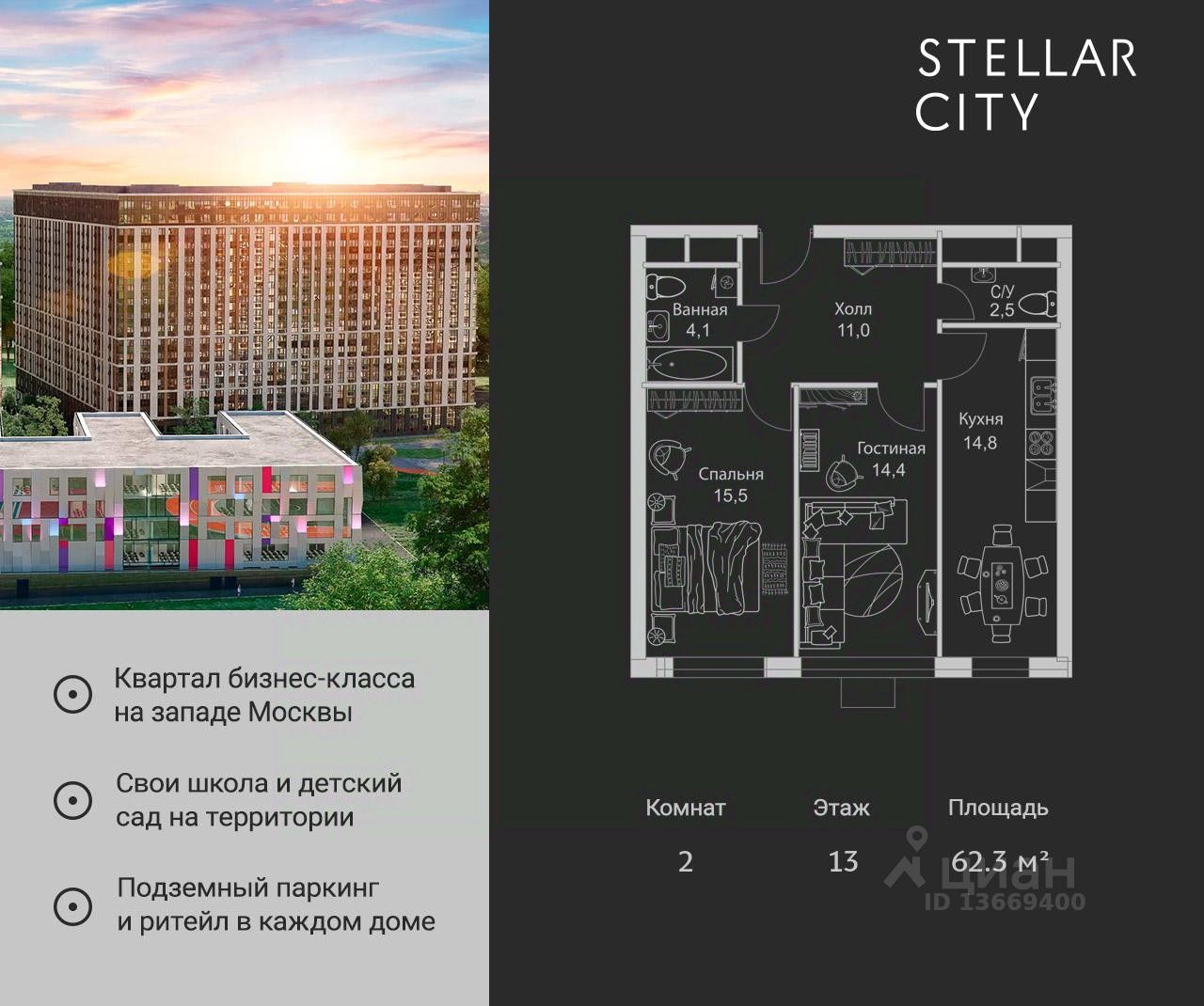 Продается квартира от надежного застройщика Tashir Estate в квартале бизнес-класса Stellar City в ЗАО Москвы.