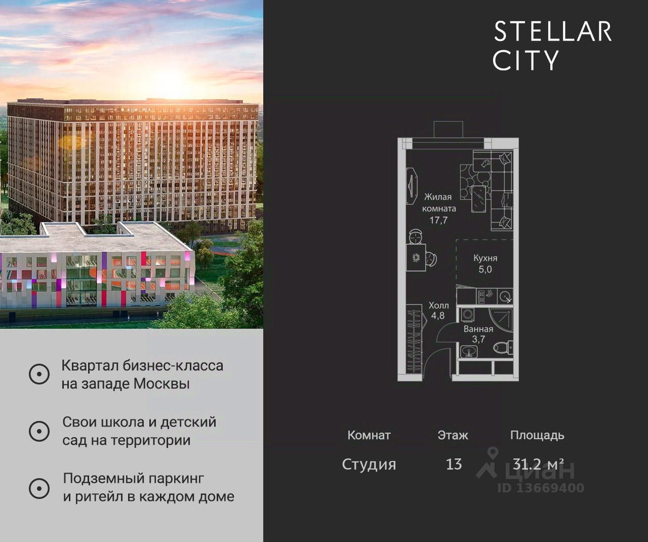 Продается квартира от надежного застройщика Tashir Estate в квартале бизнес-класса Stellar City в ЗАО Москвы.