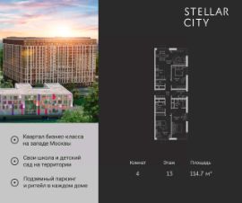 Продается квартира от надежного застройщика Tashir Estate в квартале бизнес-класса Stellar City в ЗАО Москвы.