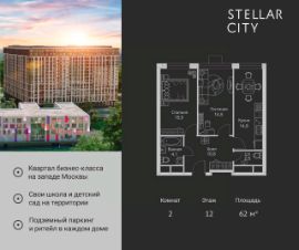 Stellar City — квартал в ЗАО Москвы вблизи инновационного центра Сколково. В окружении — 11 парков и природных зон, в том числе Долина реки Сетунь, Мещерский лес и парк развлечений The Rink.