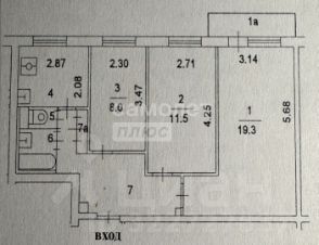 Отличная планировка, все комнаты раздельные. Площади 19,3+11,5+8 кв.м.