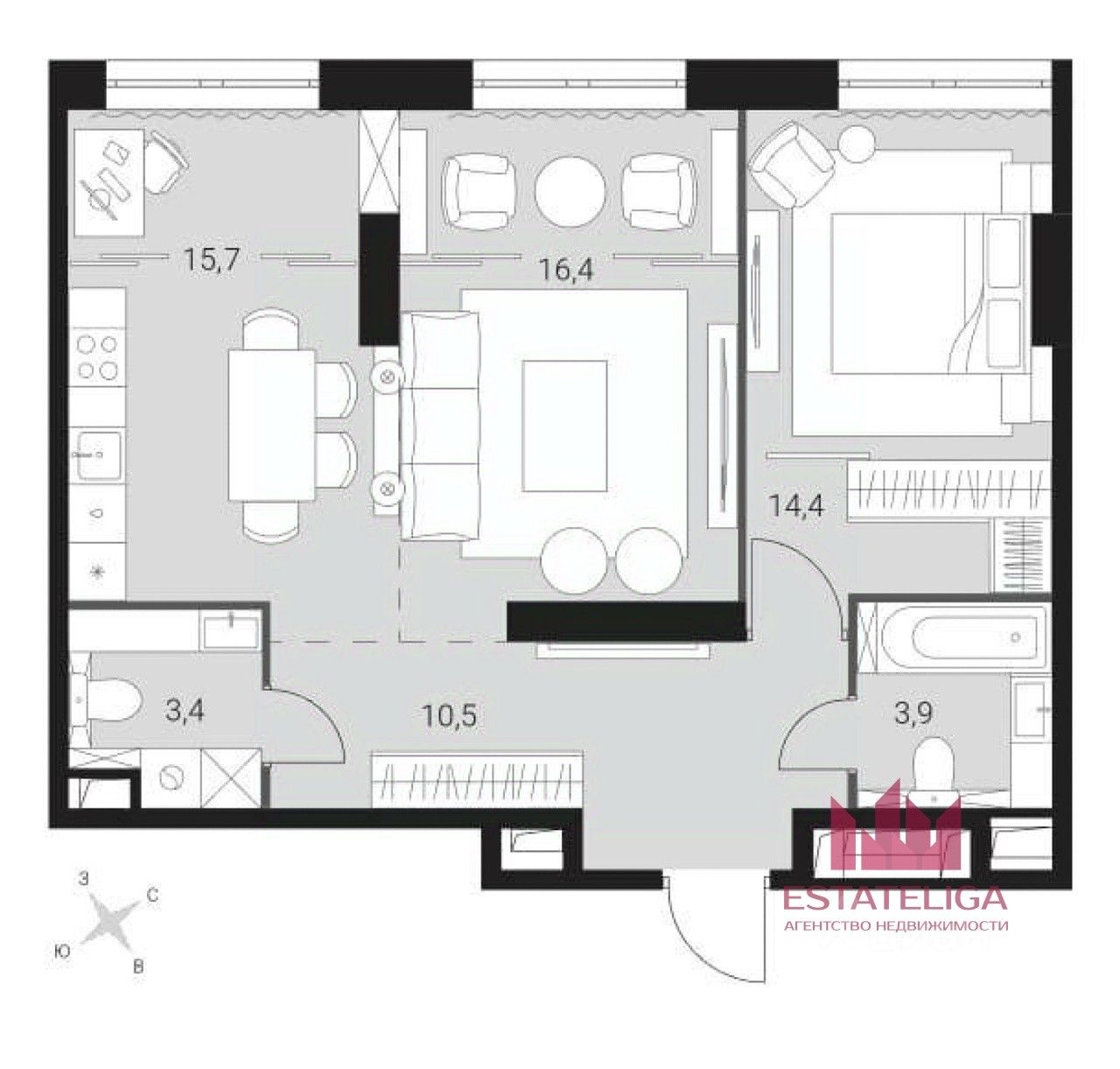 Id 57249. Продаётся квартира формата евро-3 с отделкой white box!