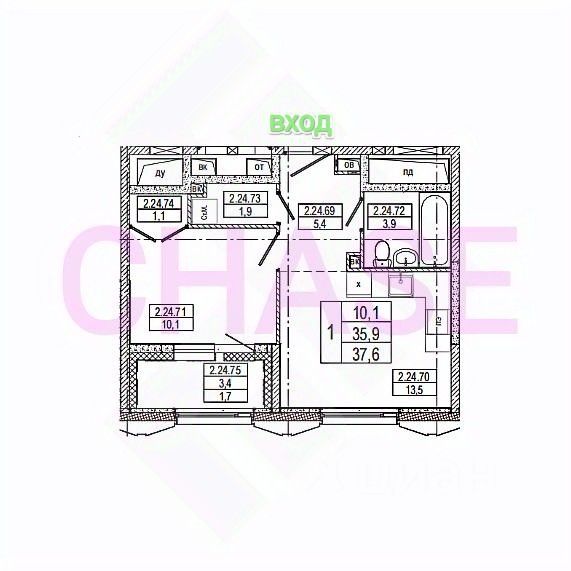 В квартире две мокрые точки, одна на кухню и совмещенный санузел, вторая на постирочную/гардероб.