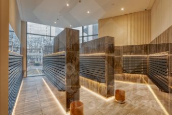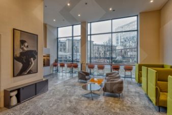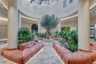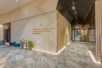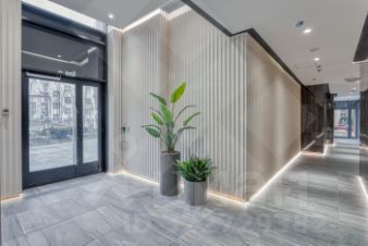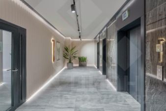 В центральном холле размещаются ресепшн, мини-переговорные, пространство для коворкинга и озелененная зона ожидания с деревьями, кустарниками и уютными креслами. Отделка мест общего пользования выполнена по индивидуальному проекту дизайн-бюро Haast. Номер в базе: J60172