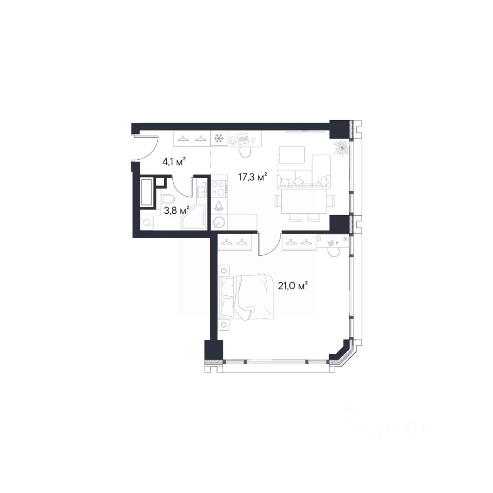 Продаётся 1-комнатная квартира площадью 46,2 м², расположенная на 12 этаже корпуса 2,1.
