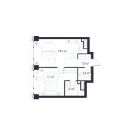 Продаётся 1-комнатная квартира площадью 49,6 м², расположенная на 20 этаже корпуса 2,1.