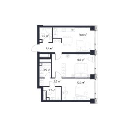 Продаётся 2-комнатная квартира площадью 66,1 м², расположенная на 25 этаже корпуса 2,1.