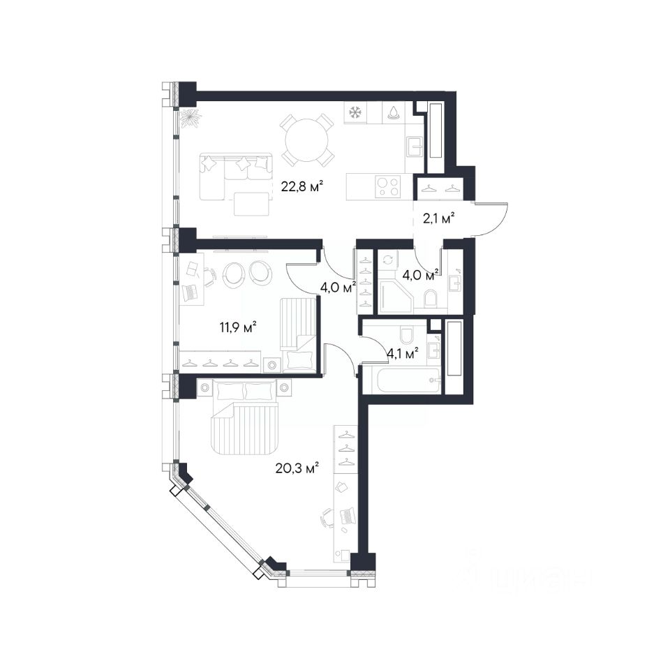 Продаётся 2-комнатная квартира площадью 69,2 м², расположенная на 31 этаже корпуса 2,1.