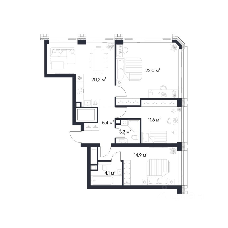Продаётся 3-комнатная квартира площадью 81,5 м², расположенная на 38 этаже корпуса 2,1.