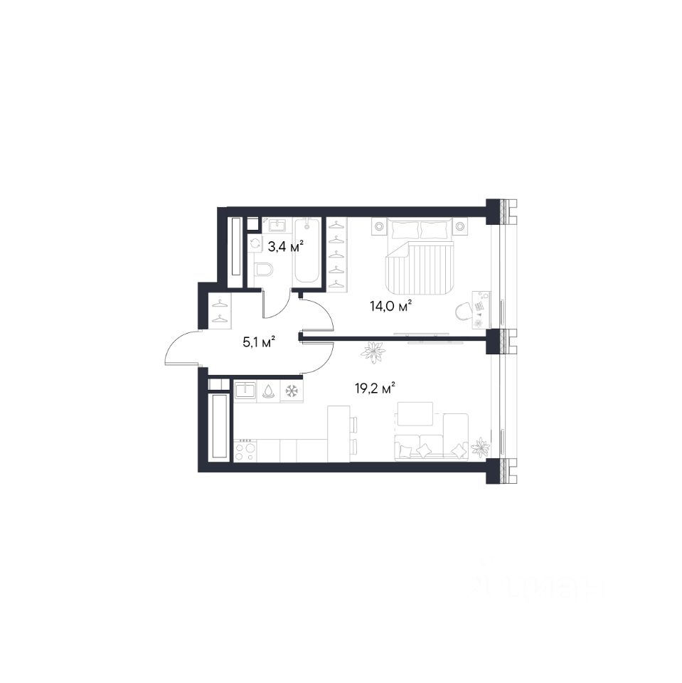 Продаётся 1-комнатная квартира площадью 41,7 м², расположенная на 38 этаже корпуса 2,1.