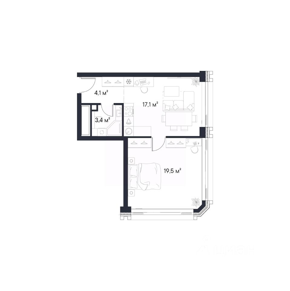 Продаётся 1-комнатная квартира площадью 44,1 м², расположенная на 38 этаже корпуса 2,1.
