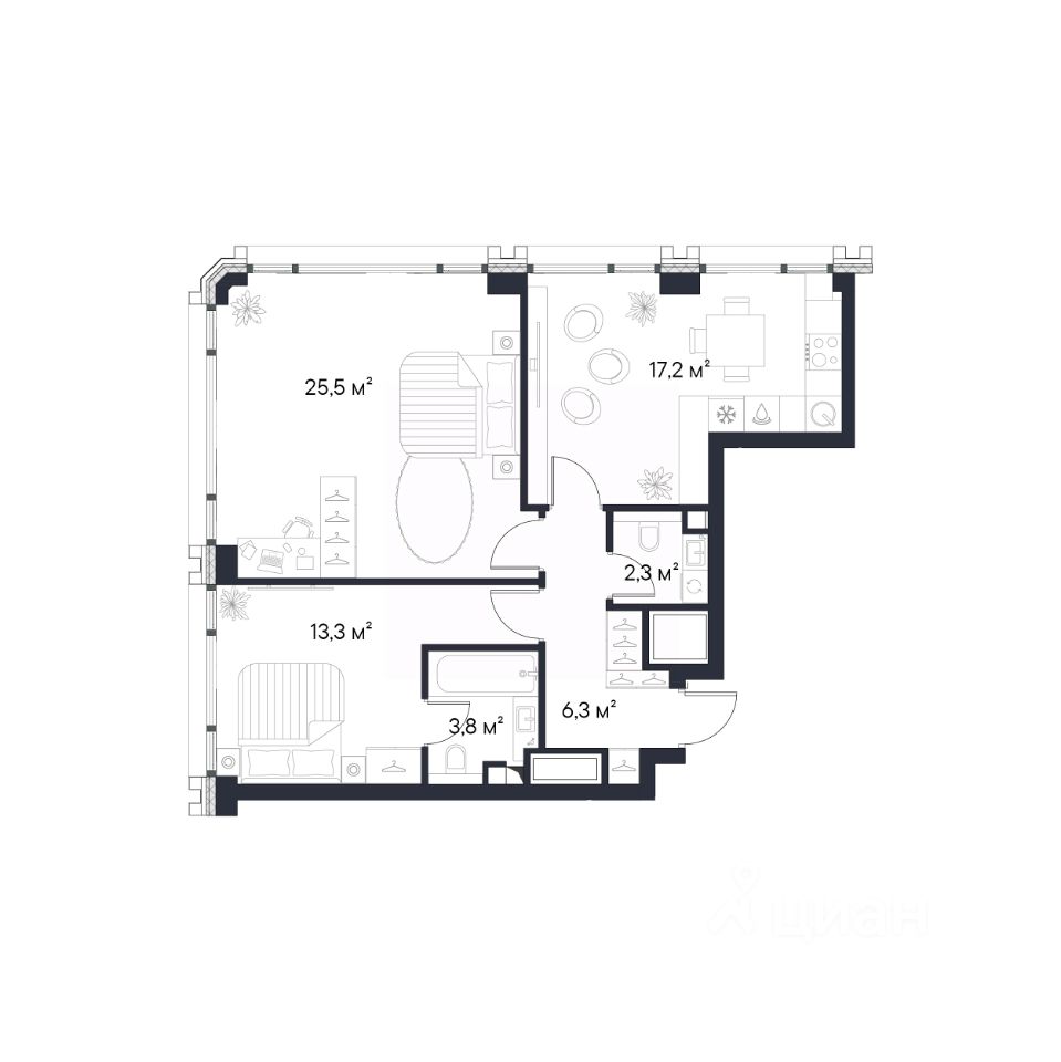 В ноябре 2025 года совместно со Сбер действует ипотечная программа на эту квартиру с фиксированной ставкой 13,9% на весь срок кредитования.