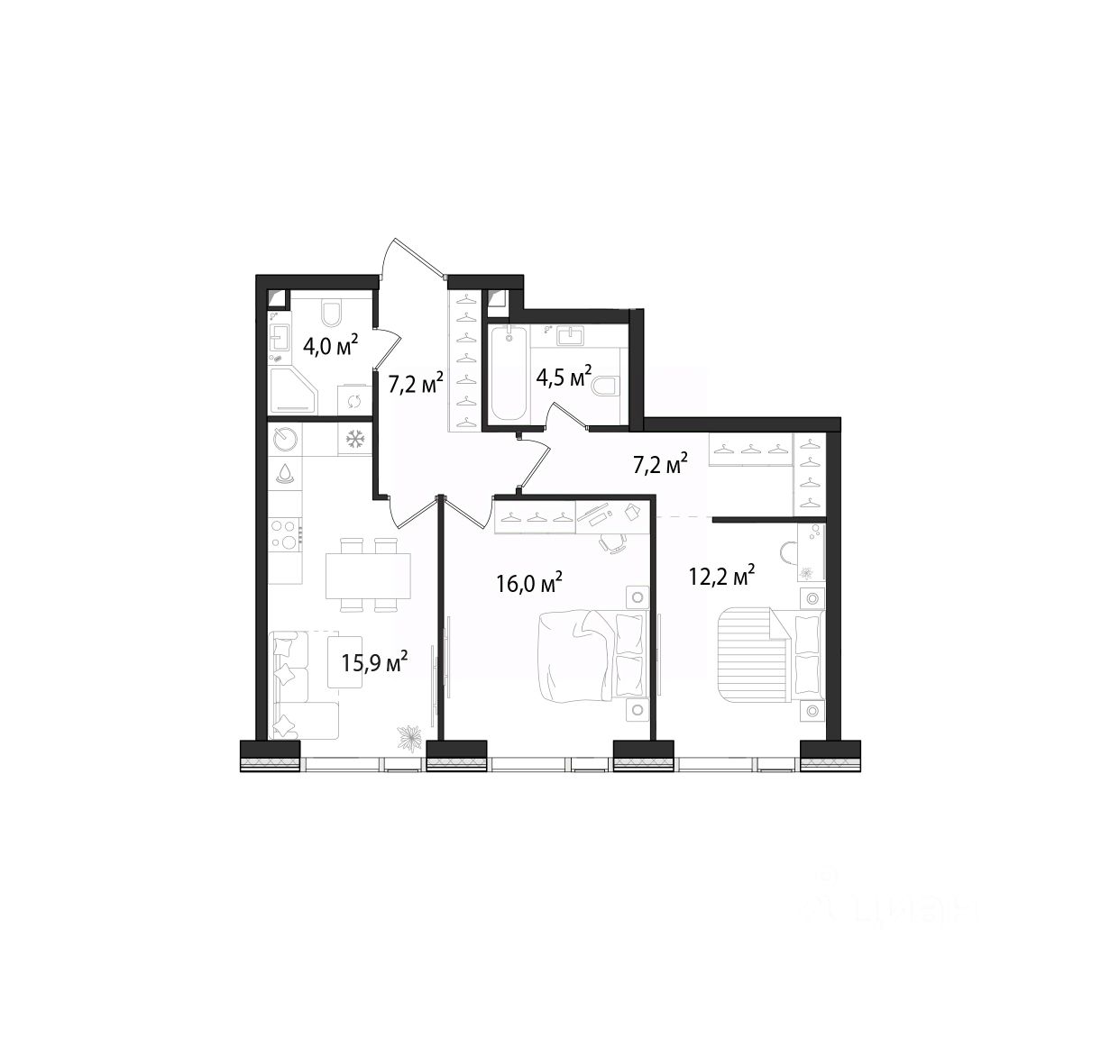 Продаётся 2-комнатная квартира площадью 67 м², расположенная на 14 этаже корпуса 2,2.