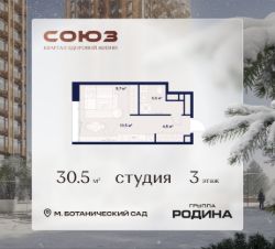 Продаётся квартира-студия площадью 30.5 м² на 3 этаже в Жилом Комплексе "Союз".