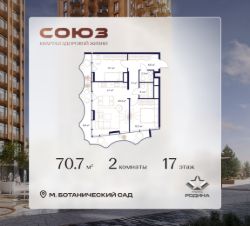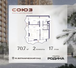 Продаётся 2-комнатная квартира площадью 70.7 м² на 17 этаже в Жилом Комплексе "Союз".