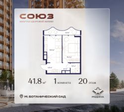 Продаётся 1-комнатная квартира площадью 41.8 м² на 20 этаже в Жилом Комплексе "Союз".