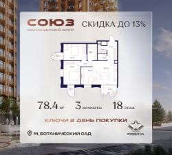 Продаётся [rooms_text] площадью 78.4 м² на 18 этаже в Жилом Комплексе "Союз".