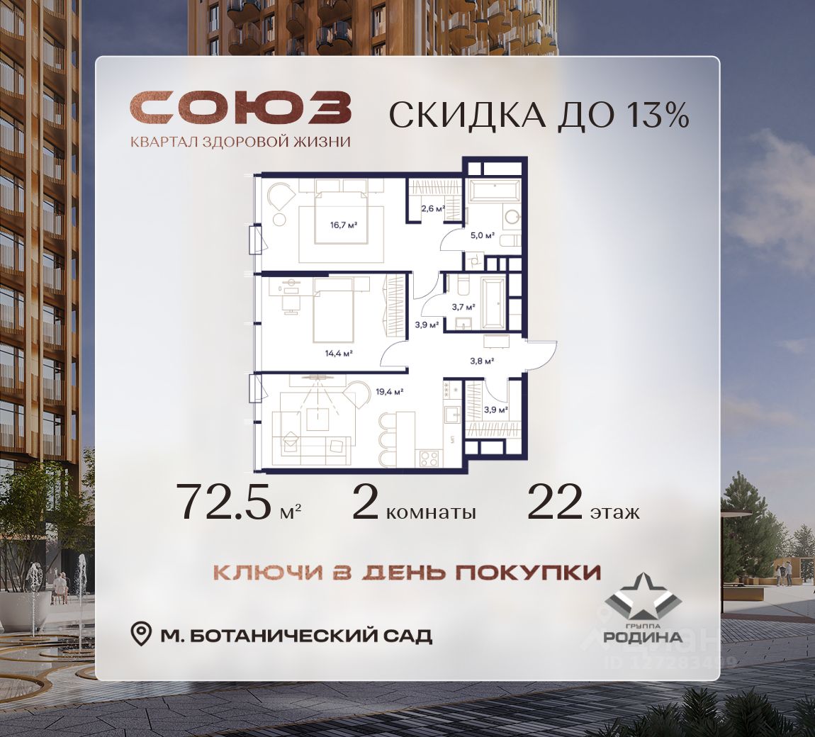 - 2 мин. до парка "Сад Будущего";