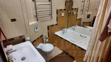 В ванной комнате большая ванна и новая сантехника.