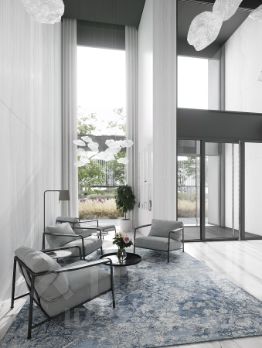 Закрытая территория жилого комплекса, продуманное благоустройство, эксплуатируемые кровли стилобата, образовательный центр с детским садом создают приватное пространство для тихой семейной жизни, а городская площадь с фонтанами, ресторан, супермаркет, коммерческая инфраструктура на первых этажах привносят созвучную с ритмом города динамику.