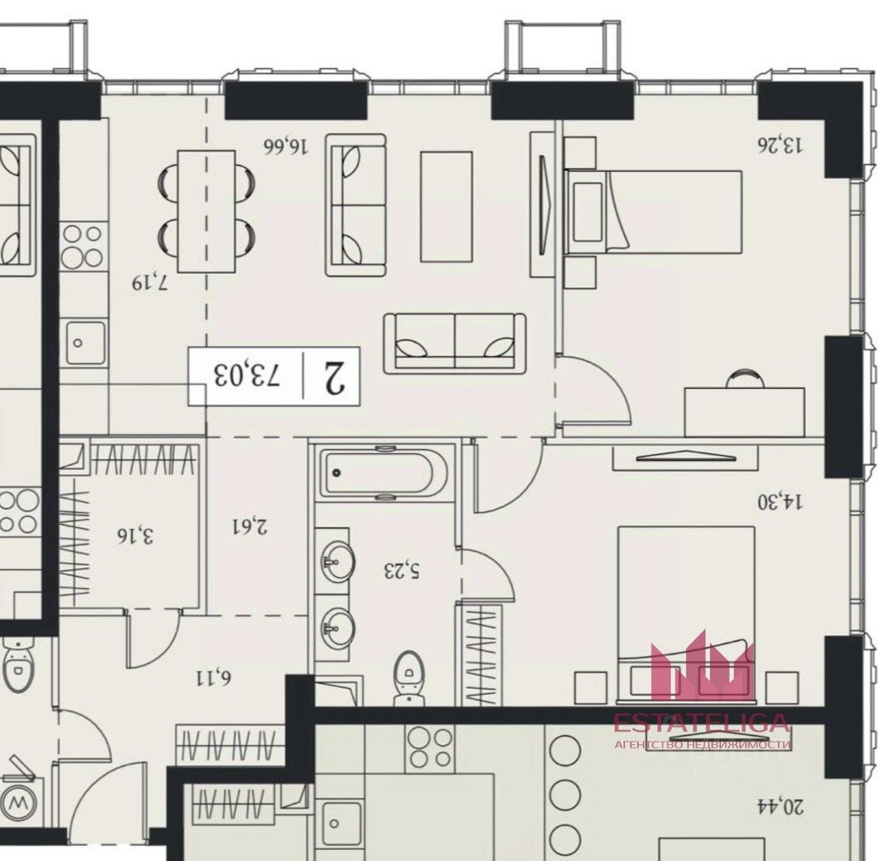 Общая площадь — 73м², потолки — 3,15 м, что создаёт ощущение простора и света. Квартира без ремонта, что позволит реализовать все ваши дизайнерские идеи.