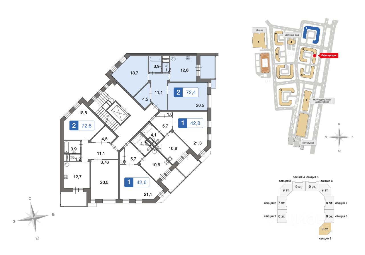 Продаётся 2-комнатная квартира в сданном доме (Семёна Гордого, 1), срок сдачи: III-кв. 2018, общей площадью 72.6 кв.м., на 9 этаже. Расположение, транспортная доступность