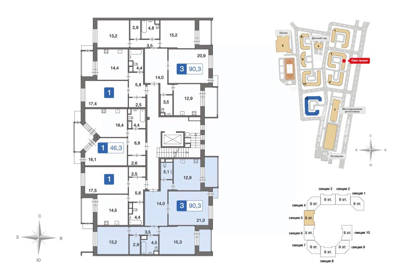 Продаётся 3-комнатная квартира в сданном доме (Семёна Гордого, 12), срок сдачи: IV-кв. 2018, общей площадью 90.2 кв.м., на 6 этаже. Расположение, транспортная доступность