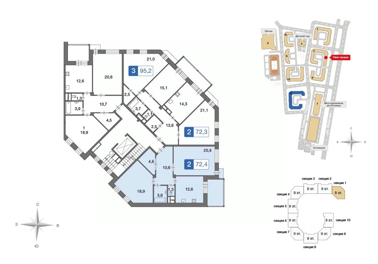Детский сад на 150 мест и школа на 825 мест уже построены и в ближайшее время будут введены в эксплуатацию. Для автовладельцев в комплексе предусмотрены парковочные места, как на придомовой территории, так и в крытом семиуровневом паркинге.
