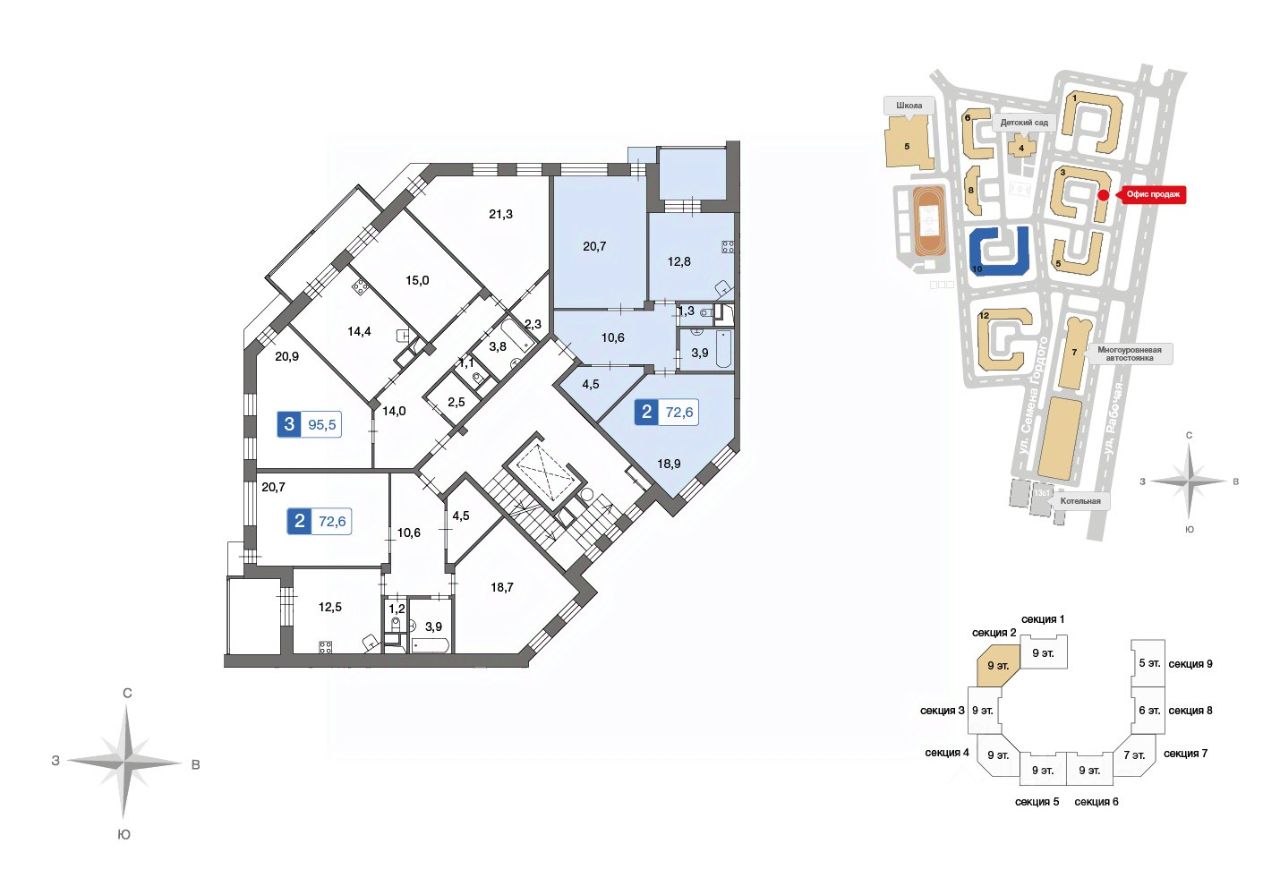 Продаётся 2-комнатная квартира в сданном доме (Семёна Гордого, 10), срок сдачи: IV-кв. 2018, общей площадью 72.6 кв.м., на 6 этаже. Расположение, транспортная доступность