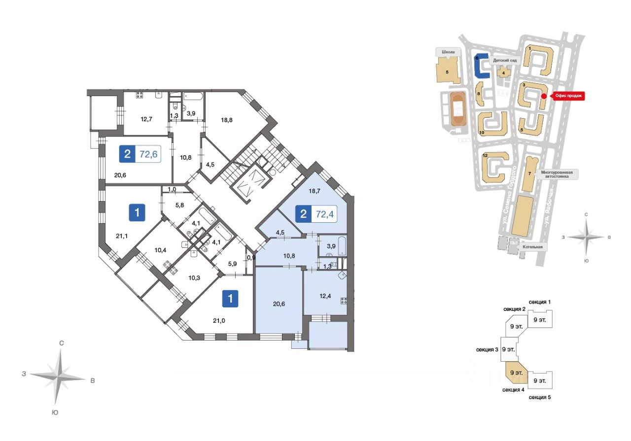 Продаётся 2-комнатная квартира в сданном доме (Семёна Гордого, 6), срок сдачи: IV-кв. 2018, общей площадью 72.4 кв.м., на 5 этаже. Расположение, транспортная доступность