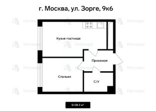 Перед вами квартира-трансформер площадью 38 м². Это "бетон без ремонта" со свободой планировкой, где можно спроектировать студийное пространство или зонировать его на спальную и гостиную зоны.