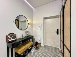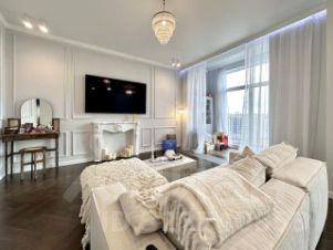 Квартиру делали для себя по дизайн проекту из высококачественных премиальных материалов. Напольное покрытие - паркет из дуба/ керамогранит. Стены и потолок выкрашены в светлые тона. Установлена система умного дома. Позволяет регулировать освещение во всей квартире + умная дверь с удаленным доступом.