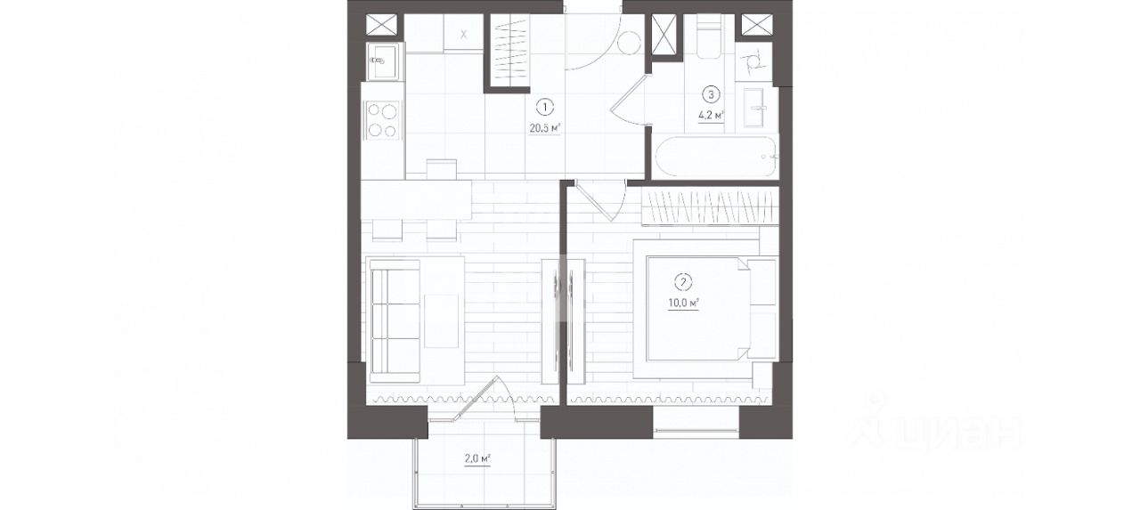 - Просторная кухня-гостиная, комфортная спальня и функциональный санузел;