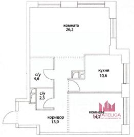 • Две изолированные комнаты — 26,2 м² и 14,2 м²