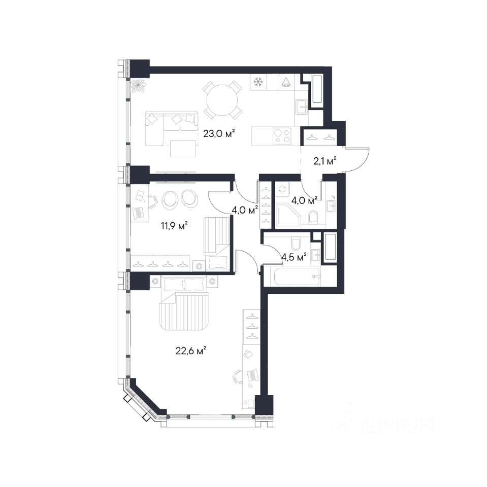 Продаётся 2-комнатная квартира площадью 72,1 м², расположенная на 10 этаже корпуса 2,1.