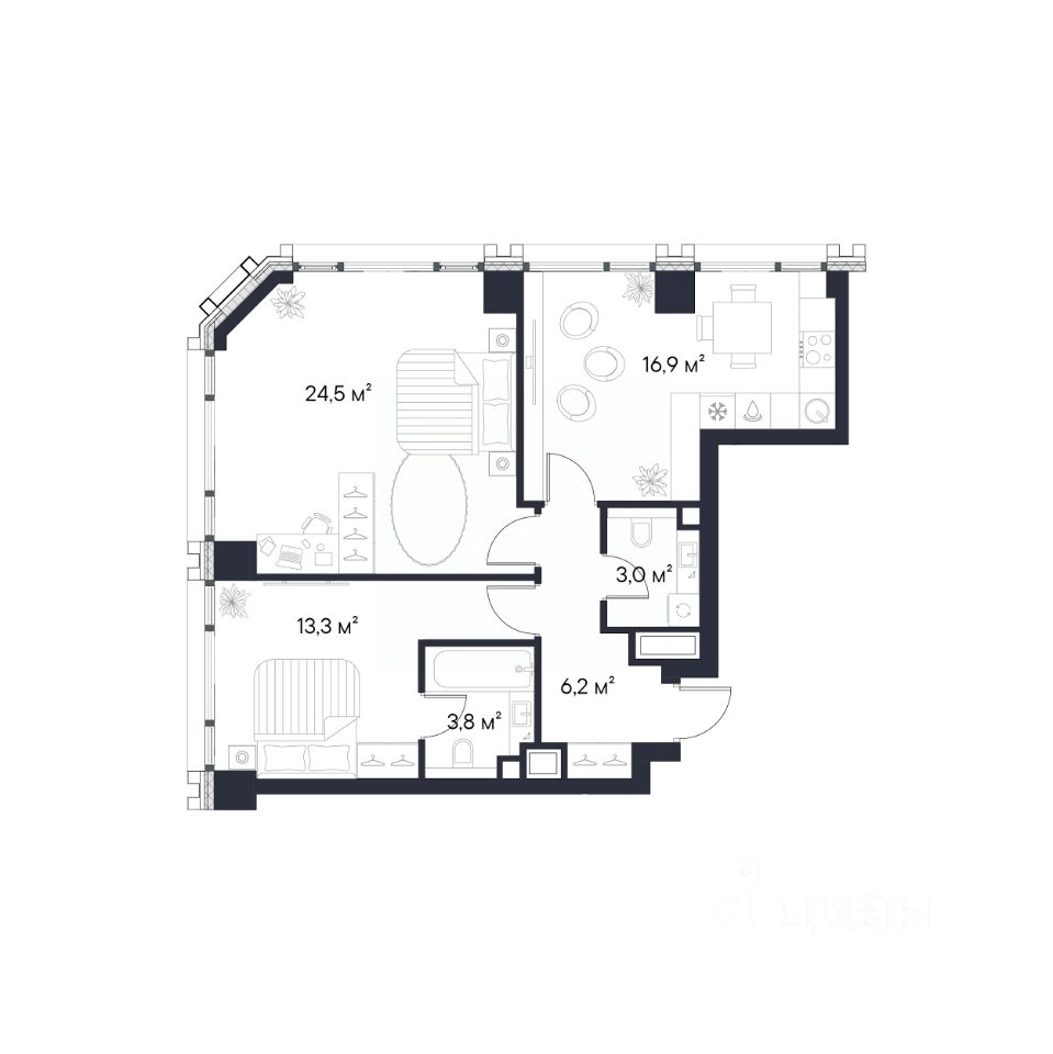 Продаётся 2-комнатная квартира площадью 67,7 м², расположенная на 10 этаже корпуса 2,1.