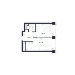 Продаётся 1-комнатная квартира площадью 41,6 м², расположенная на 23 этаже корпуса 2,1.