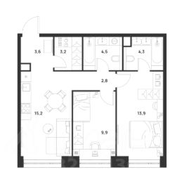 Продается уютная 2-комн. квартира площадью 57,4 кв.м на 17 этаже жилого комплекса бизнес-класса Voice Towers от 3S Group. Общая площадь: 57,4 кв.м., жилая: 34,1 кв.м., площадь кухни-гостиной: 15,2 кв.м., высокие потолки: 3,12 м., санузел совмещенный.